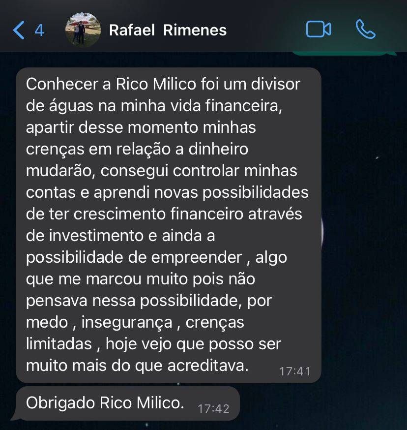 Desde 2019 mudou a sua mente e sua vida financeira, vivendo novos resultados, conseguindo poupar seus primeiros mil reais e achando incrível e ir escalando isso.
